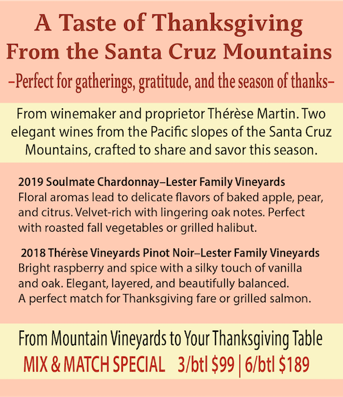 From the Pacific slopes of the Santa Cruz Mountains, Lester Family Vineyards produces stellar quality Pinot Noir grapes. This wine's glowing garnet color shows-off a real gem. It's bright raspberry spice up front moves into a silky vanilla middle palate, with a seductive, lingering oak tannin finish. Great aging potential, and best paired with barbequed salmon.